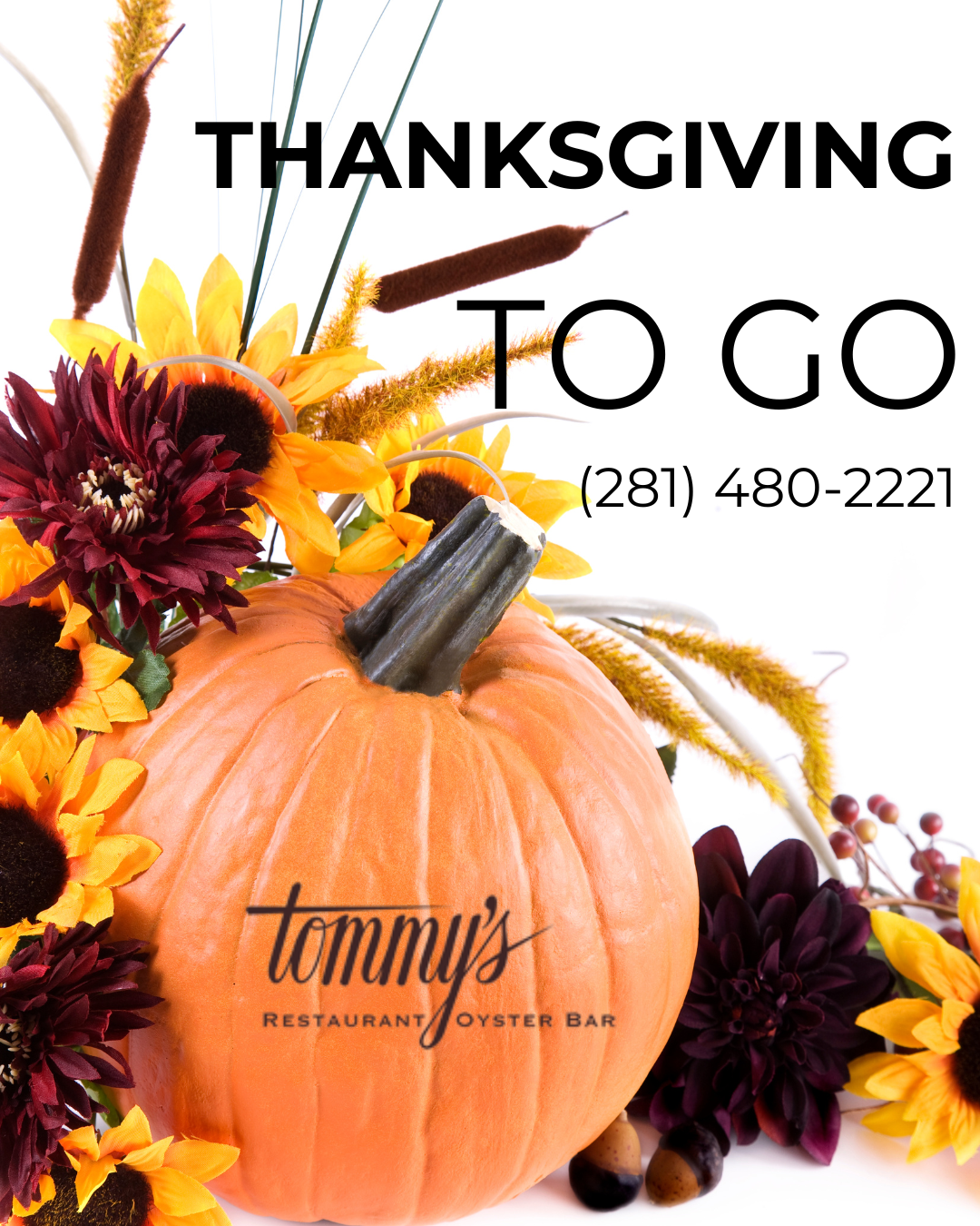 Order by: November 22 • Pick up: November 26 (call for pickup window). To reserve your feast, call 281-480-2221 or visit tommys.com/. Quantities are limited—please order early.